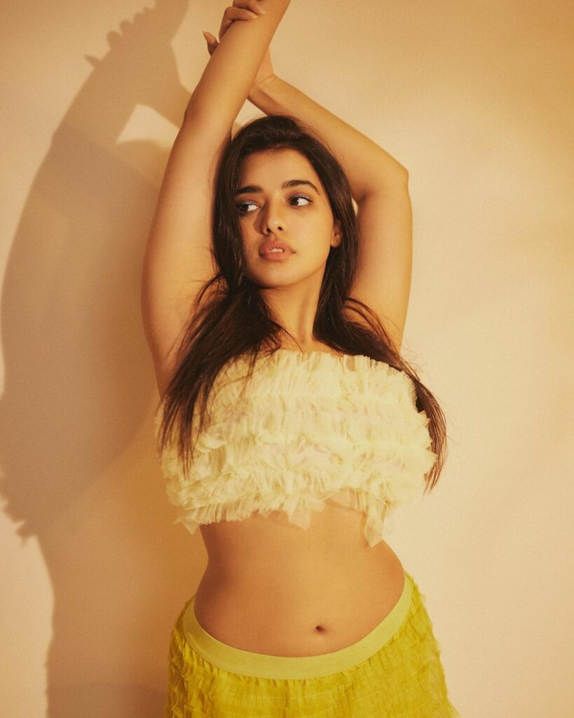 telugu films, they somehow failed to succeed, but then again, her glamour always succeeds. Here is the evidence. She stunned everyone by slipping on a green skirt and a ruffled tube blouse with no straps.