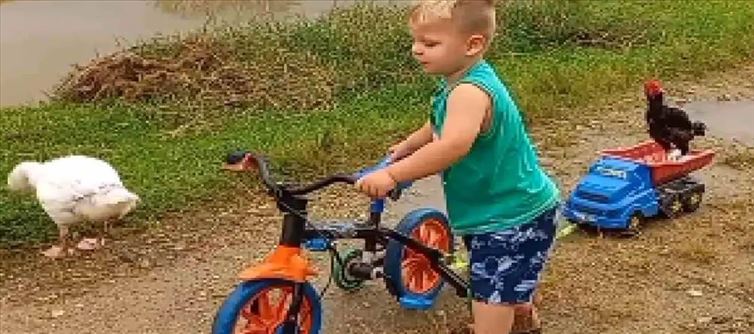 ఇక్కడ ఒక బుడ్డోడు మాత్రం ఏకంగా తాను ఆడుకుంటున్న సమయంలో కోడిపుంజు కనిపించడంతో ఏకంగా తన బండిలోకి కోడిపుంజును ఎక్కించుకొని లిఫ్ట్ ఇచ్చాడు. చిన్న సైకిల్, ఒక లారీ బొమ్మతో ఇంటి ముందు ఆడుకుంటున్నాడు పిల్లోడు. ఇంతలో అతనికంట కోడిపుంజు పడింది. అయితే దానిని తన లారీపై లిఫ్ట్ ఇచ్చి తీసుకువెళ్లాడు. ఇక ఆ కోడిపుంజు కూడా ఎలాంటి భయం లేకుండా ఆ లారీపై నిలబడి ఉంది అని చెప్పాలి. ఇందుకు సంబంధించిన వీడియో కాస్త తల్లిదండ్రులు కెమెరాలో బంధించి సోషల్ మీడియాలో పోస్ట్ చేయడంతో వైరల్ గా మారిపోయింది. ఈ వీడియో మనసుకు ప్రశాంతతను కలిగిస్తుందని ఎంతోమంది నెటిజన్స్ కామెంట్ చేస్తున్నారు.