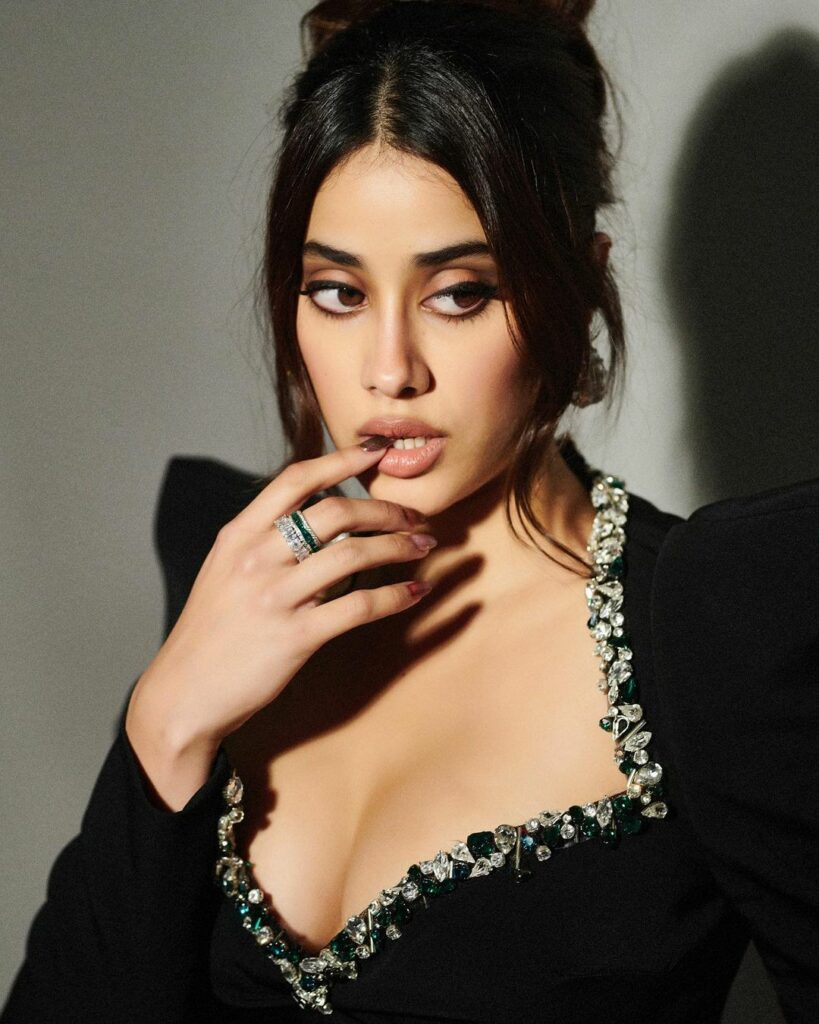 While the deep v-neck with the stones garnered all the attention, youthful hearts are being wrecked by the stunningly gorgeous bosom treat. Additionally, Janhvi's open-lipped face is quite sensual and severely teases the young people. As she posted these images, Janhvi said "Seasons Greetings," and with her stunning appearance, she is only raising the temperature.