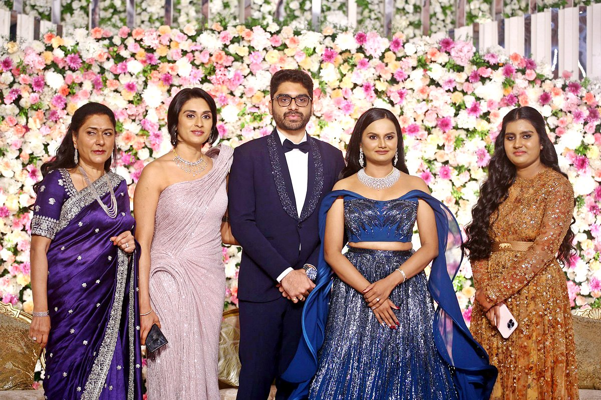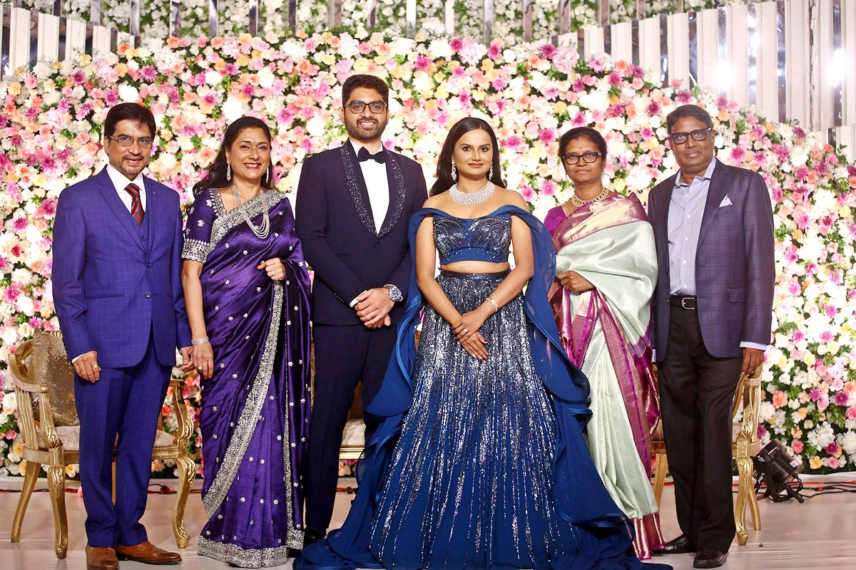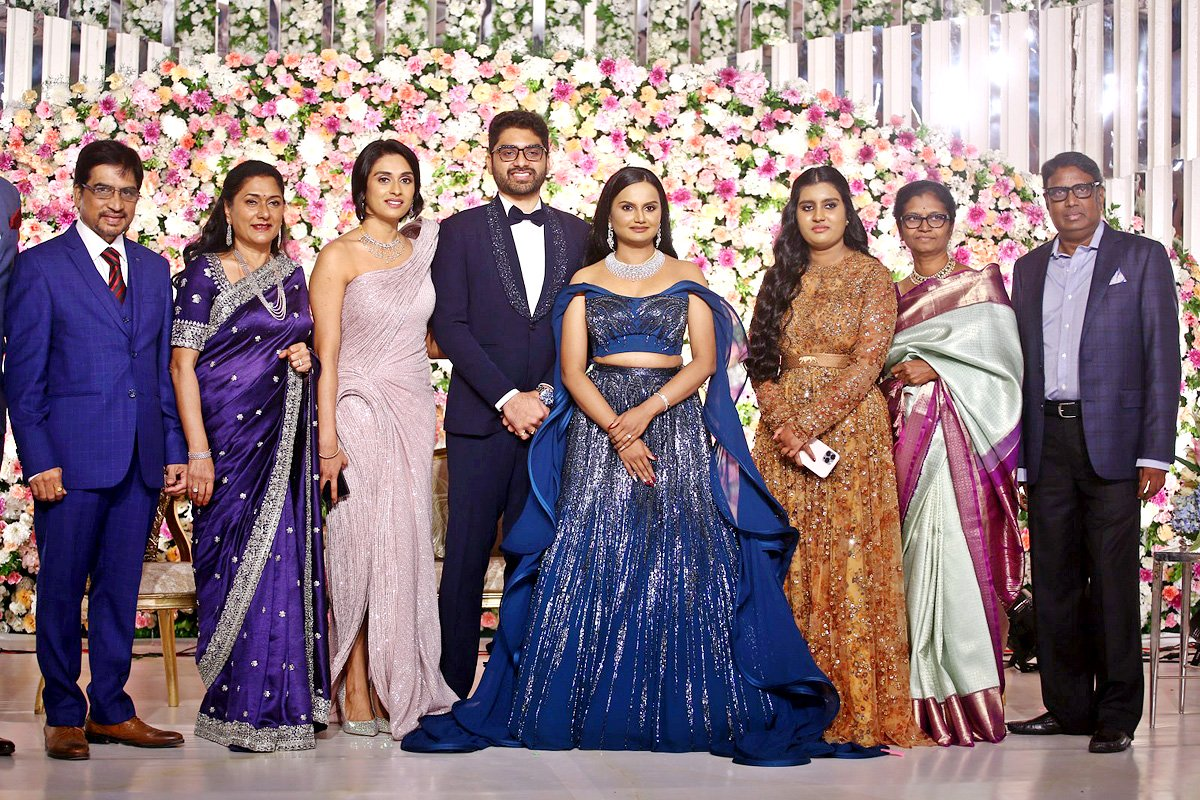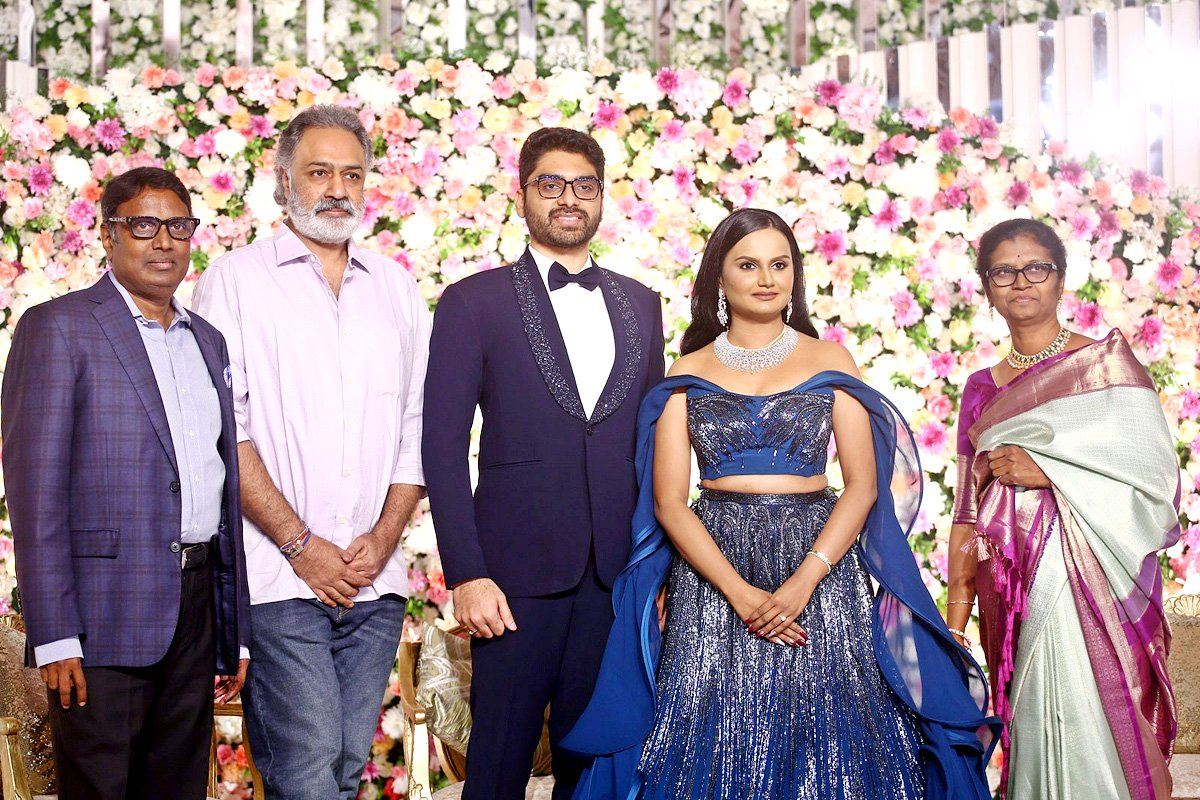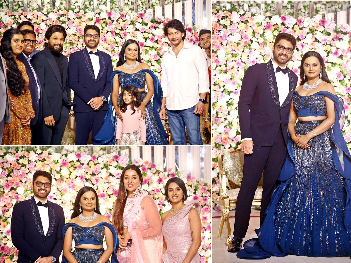 A number of famous people attended the wedding and conveyed their well wishes and blessings to the bride and groom, including Mahesh Babu, Allu Arjun, raghavendra Rao, Rajasekhar, director Shekhar Kammula, and Daggubati Purandeshwari. ravi looks dapper in a suit, but neelima steals the show in a blue lehenga. The bride and groom both have lovely looks. The gunasekhar couple was visible greeting the visitors.