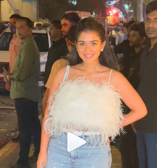 radhika Merchant had reached her friend's birthday party, whose video is becoming very viral on social media. In the video, radhika is seen getting out of her car and going towards Bandra's popular restaurant 'Akeena'. During this, radhika also posed for the camera to the paparazzi. In the video, we can see that radhika wore a white colored faux fur tube top for the party, which she paired with blue colored blingy denim pants. radhika looked drop dead gorgeous with minimal makeup and her sweet smile.