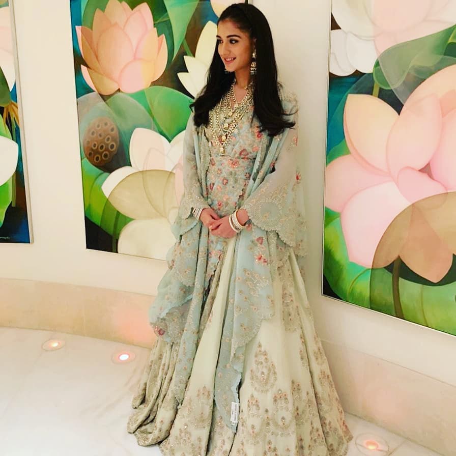 radhika wore a beautiful and expensive lehenga at the wedding of Armaan Jain, son of Reema Jain and Manoj Jain. She wore a cream colored lehenga with a backless blouse, in which she was looking very beautiful. She accessorised her look with an emerald layered neckpiece and matching earrings.