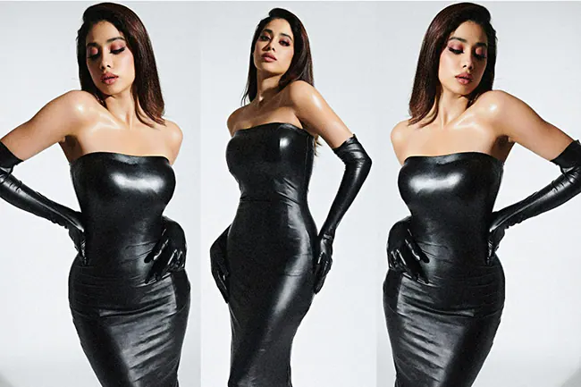 Janhvi is pictured in this most recent photo shoot sporting a body-hugging, strapless gown and matching latex gloves. She exuded oomph with her glam factor and is keeping her followers up at night. These images quickly travelled around