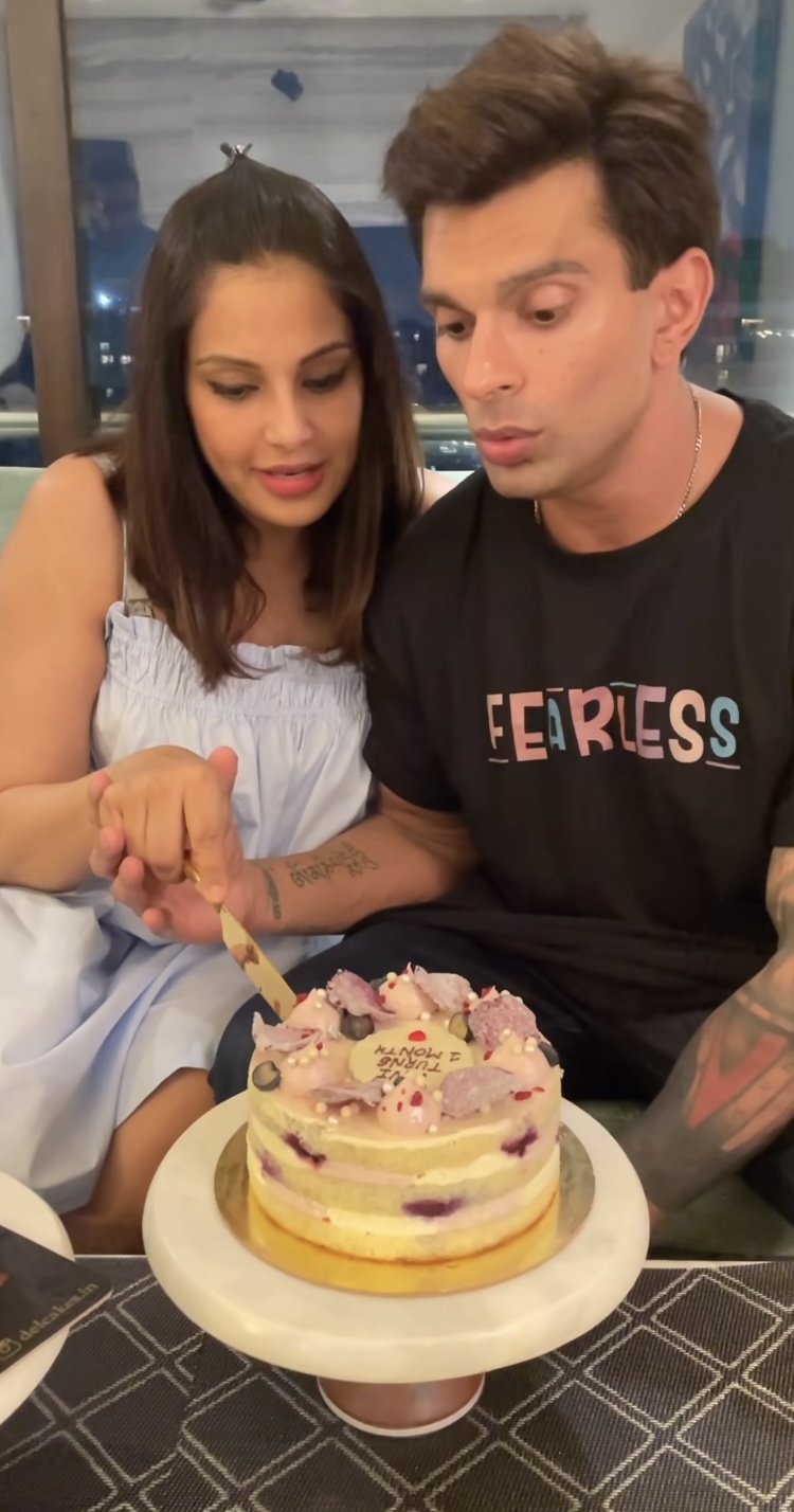 A week ago bipasha basu and karan singh grover celebrated one month of the birth of their baby girl. She had shared a video on her insta handle, in which we can see the new parents cutting a delicious cake. The cake was decorated with lavender colored cream and marshmallows. While Bipasha looked pretty in a powder blue strappy dress, karan wore a black T-shirt with graphics on it.