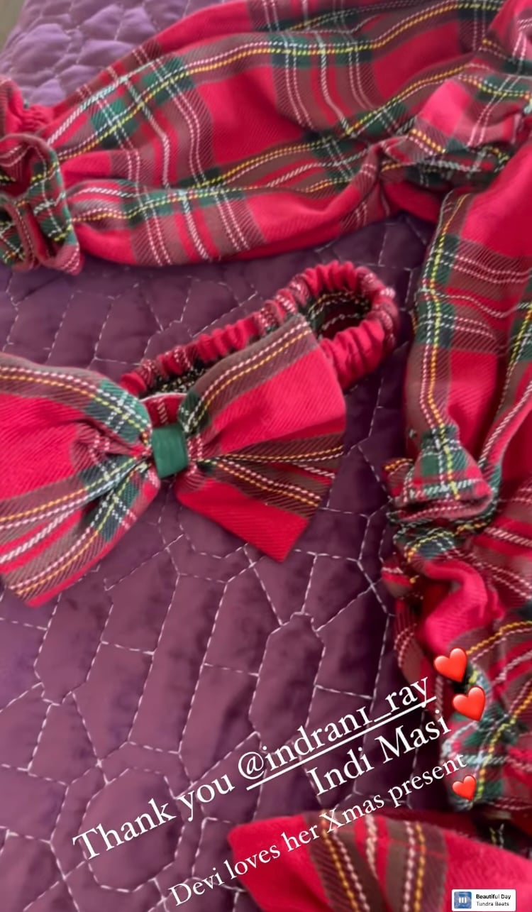 It also included two beanie colored socks and a pretty bow hair band. The gift was from none other than Devi's maternal aunt, Indrani Ray. We are so excited to see the goddess wearing this beautiful pair on christmas night this winter. Atop the picture, Bipasha penned a lovely note to thank Indrani and revealed that Devi loved her christmas gift. He had written, "Thank you @indrant ray Indrani maasi, Devi loved the christmas gift."
