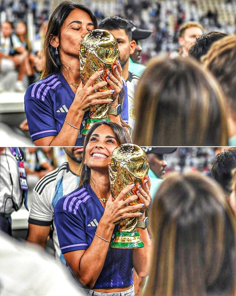 social media accounts. She said in the photos' captions, "I don't even know where to begin. How incredibly proud we are of you, @leomessi. Thank you for instilling in us the belief that we must persevere through all obstacles in order to achieve success. We are aware of your years of suffering and motivation for winning the world championship.