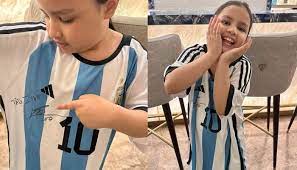 The photo of Argentinian player Lionel Messi gifting his jersey to MS Dhoni's daughter Ziva is going viral on social media. argentina won the FIFA world cup after 36 years after winning the match against france in a penalty shootout. This final world cup match was nail-biting and made all football fans so nervous since it was so thrilling till the end. This made Lionel Messi's dream come true. Meanwhile, Lionel Messi has sent a surprise gift to cricket legend MS Dhoni's daughter Ziva. Lionel Messi has signed the argentina jersey and sent it to Ziva.