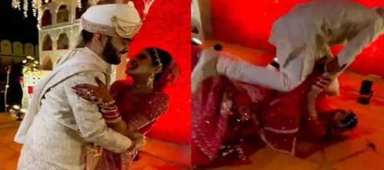 జైపూర్ లో ఒక నూతన జంట ప్రీ వెడ్డింగ్ షూట్ లో పాల్గొంది. ఈ క్రమంలోనే ఫోటోగ్రాఫర్లు చెప్పినట్లుగానే ఒక స్టేజి మీద ఫోటోలకు ఫోజులు ఇస్తూ ఉంది. ఈ క్రమంలోనే హీరో హీరోయిన్ల రేంజిలో వధూవరులు ఫోటోకి ఫోస్ ఇవ్వాలని అనుకున్నారు. కాస్త రొమాంటిక్ గా ట్రై చేశారు. ఇంతలో వరుడు వధువు లేహంగాపై కాలువేసి తడబడ్డాడు. దీంతో ఉన్నటువంటి వధువుపై పడిపోయాడు. ఆ బరువు ఆపుకోలేక వధువు కూడా కింద పడిపోయింది. దీంతో అక్కడ జరిగింది చూసి ఫోటోగ్రాఫర్లు కాసేపు నవ్వుకున్నారు అని చెప్పాలి.