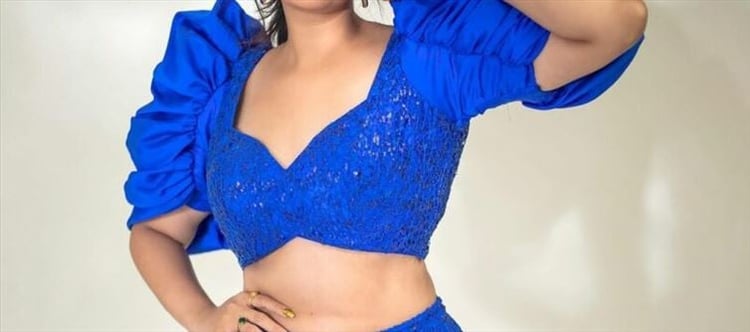 Sreemukhi always impresses audiences with her extraordinary acting skills, whether she's on stage or in front of a camera. Over time, she has emerged as the most in-demand anchor. The diva is photographed today wearing a gorgeous all-blue ensemble. She was dressed in a matching cobalt blue blouse and lehenga, and her make-up was kept to a minimum. She wore golden earrings, nail paint, and a diamond ring on her index finger in place of neck jewellery. Raise the bar for ethnic