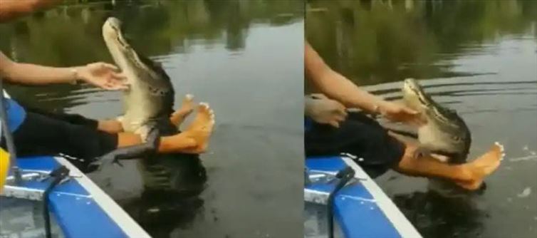 ఇవన్నీ కూడా సాదుజంతువుల కిందకు వస్తాయి.. మనుషులతో కూడా అవి ఎలాంటి హాని చేయకుండా కలిసి మెలసి ఉంటాయి. అయితే, మొసళ్ల వంటి ప్రమాదకరమైన జంతువులకు చాలా దూరంగా ఉండటమే మంచిది. కానీ, ఫ్లోరిడాకు చెందిన ఈ వ్యక్తి మొసలికి మాంసం ముక్కను తినిపిస్తున్న వీడియో ప్రస్తుతం.. నెట్టింట వైరల్‌గా మారి నెటిజన్లను బాగా పిచ్చెక్కించింది.ఈ వైరల్ వీడియోలో మనం గమనిస్తే.. ఒక వ్యక్తి తన మోకాళ్ల మధ్య మొసలిని పట్టుకుని మాంసం ముక్కను తినిపిస్తున్న తీరు మీరు చూడవచ్చు. ఆ మనిషిని చూసిన మొసలి అతని దగ్గరికి వస్తుంది. ఆ తర్వాత మొసలిని అతను తన రెండు కాళ్ల మధ్యలోకి తీసుకుని.. మాంసం ముక్కను తినిపిస్తాడు. ఆహారం ఇచ్చిన తర్వాత అతను మొసలిని నీటిలోకి ఈదడానికి వెంటనే వదిలేస్తాడు.ఇలా భయంకర పనులు చేస్తే ఖచ్చితంగా చావు తప్పదని నెటిజన్స్ కామెంట్స్ చేస్తున్నారు.