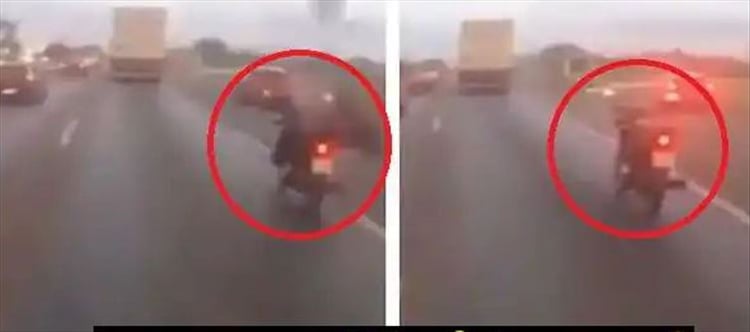 ఒక వ్యక్తి బైక్ పై వేగంగా వెళుతున్నాడు. ఇలాంటి సమయంలోనే ఎక్కడి నుంచి వచ్చిందో తెలియదు కానీ గాల్లోంచి ఏదో తెలియని వస్తువు ఎగురొచ్చి అతని బలంగా ఢీ కొట్టింది. దీంతో అతను తప్పించుకునే సమయం కూడా లేకుండా పోయింది అని చెప్పాలి. అతన్ని ఆ వస్తువు వేగంగా ఢీ కొట్టిన దాటికి బైక్ పైకి నుంచి ఒక్కసారిగా ఎగిరిపడ్డాడు. ఇక అతని వాహనం కొంత దూరం వరకు అలాగే వేగంగా దూసుకుపోయి చివరికి రోడ్డు పక్కన పడింది. అయితే ఇక అతను బైక్ పై ఎగిరి పడిన వేగం చూసిన తర్వాత అతను ఒక్కసారిగా అదృశ్యమైనట్లే కనిపిస్తుంది అని చెప్పాలి. ఈ వీడియో ట్విటర్లో వైరల్ గా మారింది.