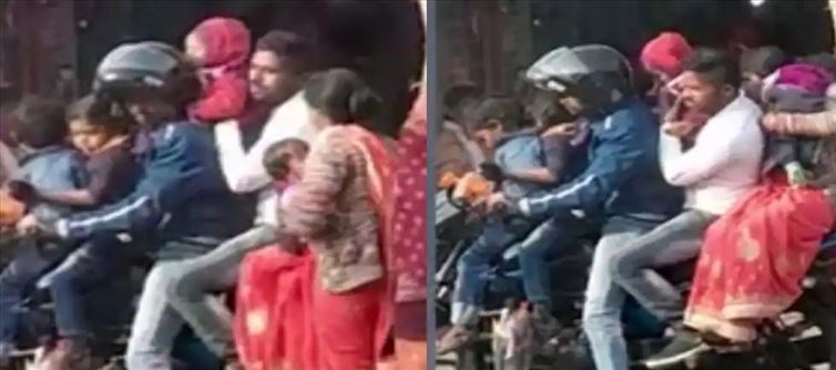 ఇద్దరు కంటే ఎక్కువ మంది కూర్చోవడానికి అవకాశం లేని బైక్ పై ఏకంగా తనతో పాటు ఆరుగురుని ఎక్కించుకొని ఒక వ్యక్తి వాహనాన్ని నడిపాడు. ఇక ఈ ఘటన అక్కడున్న స్థానికులు అందరిని కూడా ఆశ్చర్యానికి గురిచేసింది. బంక జిల్లాలోని భాగల్పూర్ - హస్ దిహ ప్రధాన రహదారిలో ఉన్న బౌన్సీలో ఒక బైక్ నడుపుతున్న వ్యక్తితో పాటు ముగ్గురు చిన్న పిల్లలు మరో మరో ముగ్గురు పెద్దవాళ్లు బైక్ పై కూర్చున్నారు. ఈ వీడియో వైరల్ గా మారిపోయింది అని చెప్పాలి. అయితే ఇలాంటి వారిపై కఠిన చర్యలు తీసుకుంటామని ట్రాఫిక్ పోలీసులు తెలిపారు.