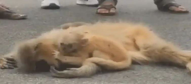 ఇలా ఇటీవల కాలంలో రోడ్లపైకి వచ్చి వాహనాల కింద పడి ప్రాణాలు కోల్పోతున్న కోతుల సంఖ్య రోజురోజుకు పెరిగిపోతుంది. ఇక ఇలాంటి వీడియోలు కూడా సోషల్ మీడియాలో వైరల్ మారిపోతున్నాయి అని చెప్పాలి. అయితే ఇలా కోతులు చనిపోతున్న సమయంలో ఎప్పుడు తల్లి చంకనే ఉండే చిన్న వానరాలు విగతా జీవిగా పడి ఉన్న తల్లి దగ్గరే దీనంగా చూస్తూ ఉన్న వీడియోలు ఎంతోమంది మనస్సును పిండేస్తూ ఉంటాయి. ఇక ఇప్పుడు ఇలాంటి తరహా వీడియోనే ఒకటి ట్విట్టర్ వేదికగా వైరల్ గా మారిపోయింది అని చెప్పాలి. ఈ వీడియో ప్రతి ఒక్కరి హృదయాన్ని కూడా మెలిపెట్టేస్తూ ఉంది.
