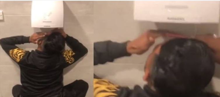 సాధారణం గా ఎవరైనా దానితో చేతులను ఆర బెట్టుకుంటారు. ఎందుకంటే దాని కోసమే అది సృష్టించబడింది. కానీ, ఆ హ్యాండ్ డ్రైయర్తో హెయిర్ కూడా ఆరబెట్టుకోవచ్చని మనోడు నిరూపించి చూపాడు. కాగా సదరు వీడియో సోషల్ మీడియా లో తెగ హల్ చల్ చేస్తోంది. ఈ వీడియో లో, వాష్ రూమ్లో హ్యాండ్ డ్రైయర్ కింద కూర్చుని దువ్వెన సహాయం తో తన జుట్టును ఆరబెట్టుకున్న విధానాన్ని చూస్తే మీకు నవ్వాగదు. హ్యాండ్ డ్రైయర్ను హెయిర్ డ్రైయర్గా ఉపయోగించే అతని ట్రిక్ చూసి నెటిజన్లు అవాక్కయిపోతున్నారు.