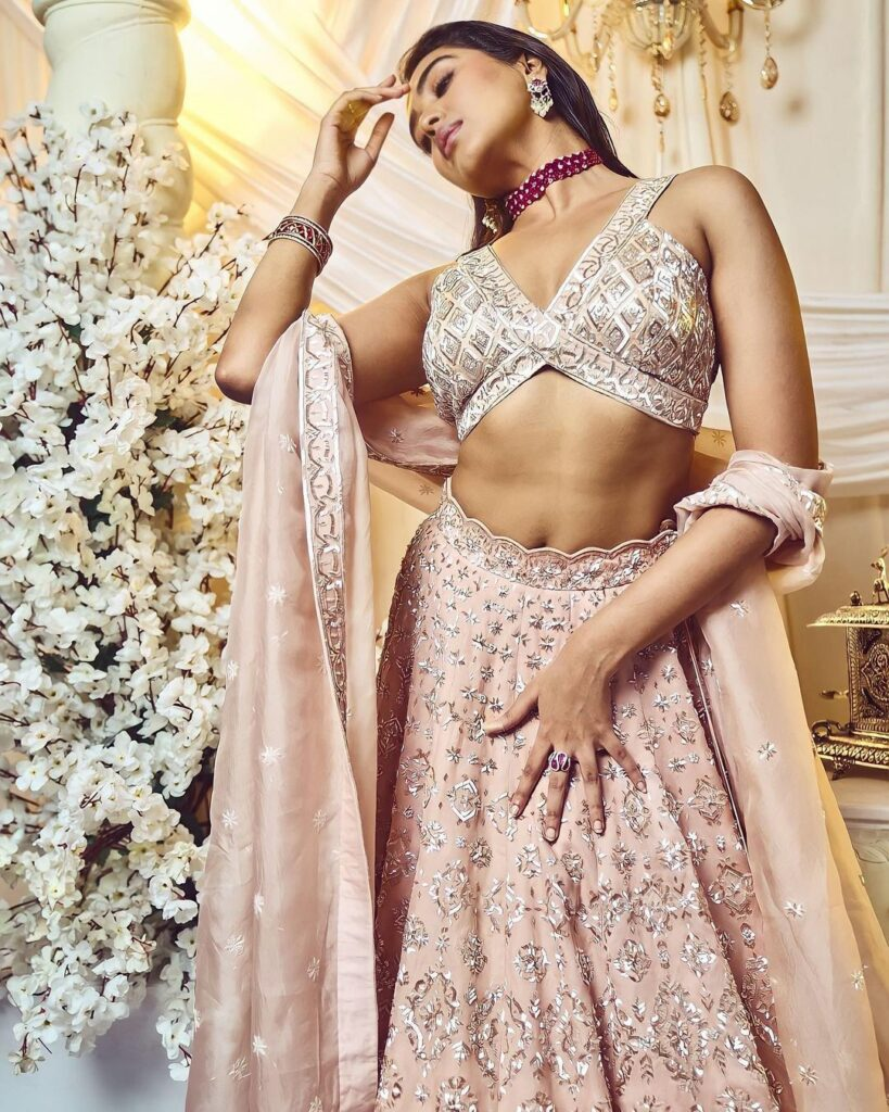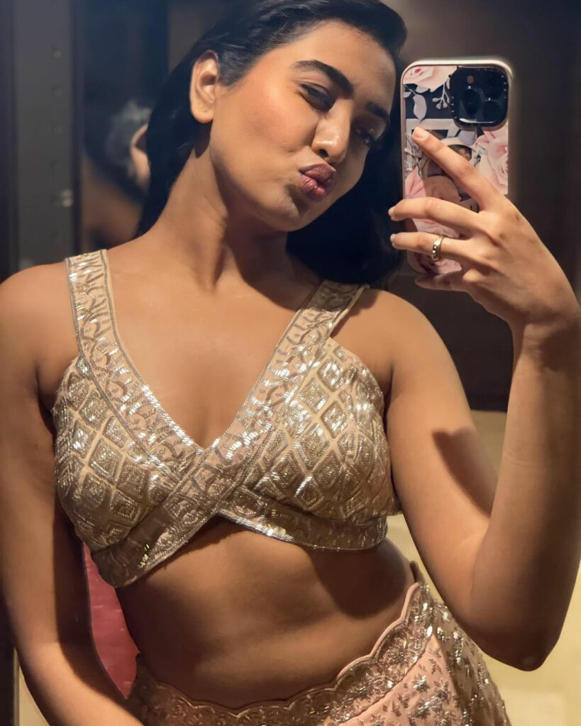 Shivani looked stunning, we must admit, dressed in a lehenga and a sleeveless deep-cut shirt studded with stones. Recently, Sivathmika dazzled in a similar outfit created by the same designer. One may ask if the two sisters' glitzy poses are too late or if they would open up new opportunities for them, but it appears that both actresses are dropping enough signals about becoming eye candy on the big screen.