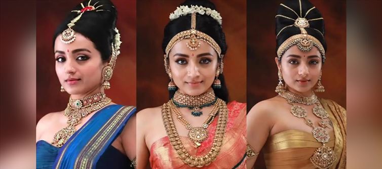 Trisha Krishnan can be seen in the film sporting the top bun and side braid that Princess Kundavai is known for, as well as other colored traditional silk costumes and jewels from an old temple. As the most intelligent princess of the Chola Dynasty, who contributed significantly to her younger brother Arunmozhi Varman, also known as raja raja Chola, becoming a formidable monarch, the gifted actress is positively ethereal.
