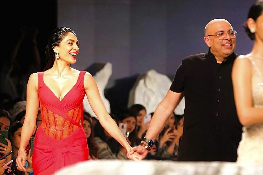 sobhita dhulipala also came down the ramp and looked stunning. Before the ramp walk, Sobhita posted photos of herself from the photo shoot. Sobhita donned a contemporary corset-style concept saree with Swarovski accents around the waist. "Draping is a delicate, cocooning, flowing and primeval art—beautiful in its attentive cinching and molding essence," she said as the caption for the collection.