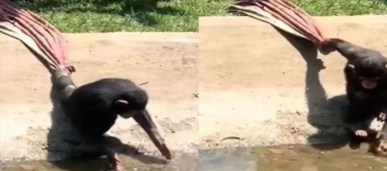 సాధారణంగా ఏదైనా చింపాంజీ నీటి కొలనులోకి దిగినప్పుడు మనిషి ఎంతో జాగ్రత్త వహిస్తూ కాళ్లు చేతులు శుభ్రం చేసుకోవడం చేస్తూ ఉంటాడు. అచ్చం మనిషి తరహాలోనే ఇక్కడ ఒక చింపాంజీ కూడా ఎంతో తెలివిగా ఆలోచించింది. ఏకంగా బయట ఒక చెట్టుకు బట్టను కట్టుకుని ఆ బట్టను పట్టుకున్న తర్వాతే తన కాళ్లు చేతులు శుభ్రం చేసుకుంటుంది. అయితే చింపాంజీ కాళ్లు చేతులు కడుక్కున్న నీటి కుంట మాత్రంపెద్దగా లోతు ఉండదు. అయినప్పటికీ చింపాంజీ చేసిన పని మాత్రం అందరిని ఫిదా చేసేస్తుంది అని చెప్పాలి. అంతేకాదు చింపాంజీ కూడా మనిషిలాగే ఆలోచిస్తుంది అన్నదానికిఈ వీడియో ఒక నిదర్శనం గా మారింది.