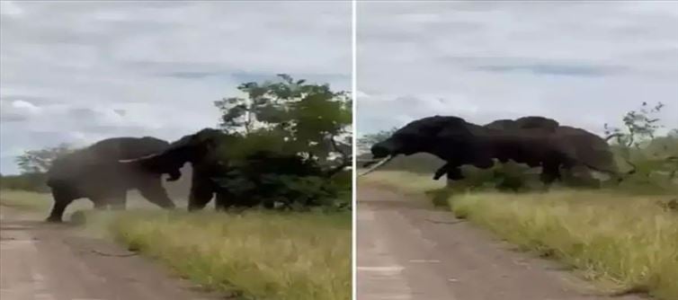 ఇక ఈ బీకరమైన పోరు చూస్తూ ఉంటే ప్రతి ఒక్కరి వెన్నులో భయం కలుగుతూ ఉంటుంది అని చెప్పాలి. ఇక ఈ ఘటన దక్షిణాఫ్రికాలోని ఈశాన్య ప్రాంతంలో ఉన్న కృగర్ నేషనల్ పార్క్ లో జరిగింది అన్నది తెలుస్తుంది. అయితే పర్యటకులు ఎప్పటిలాగానే ఇక అడవిలో ఉండే జంతువులను ఫోటోలు వీడియోలు తీసేందుకు వెళ్లారు. ఆ సమయంలోనే రెండు భారీ ఏనుగులు ఎదురుపడ్డాయి. ముందుగా మనుషుల్లాగానే రెండు ఏనుగులు కూడా ఒకదాని కళ్ళల్లోకి మరొకటి కోపంగా చూసుకున్నాయి. ఆ తర్వాత ఏకంగా దెబ్బలాడుకున్నాయి. ఏనుగుల భీకరమైన పోరులో ఏకంగా చెట్టు అగ్గిపుల్లల విరిగిపోయింది అని చెప్పాలి. ఇది చూసి భయపడిన పర్యటకులు ఇక తమ వాహనాన్ని కాస్త వెనక్కి పోనివ్వడం కూడా ఈ వీడియోలో చూడవచ్చు.