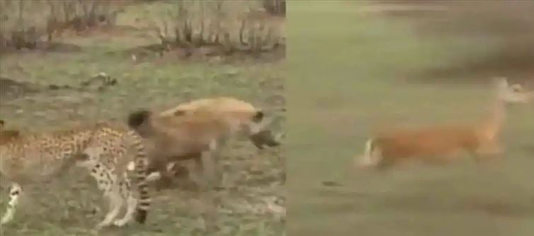 ఇక ఇప్పుడు ఇలాంటి వీడియోనే ఒకటి సోషల్ మీడియాలో తెగచక్కర్లు కొడుతుంది. ఏకంగా ఒక జింకను చిరుత పులి వేటాడింది. జింకను చిరుత పులి వేటాడడం కొత్తేమీ కాదు ఇలాంటివి ఎన్నోసార్లు జరిగాయి. ఇక ఇందుకు సంబంధించిన వీడియోలు కూడా సోషల్ మీడియాలో చాలానే ప్రత్యక్షమయ్యాయి. అయినా ఇందులో కొత్తేముంది అని అనుకుంటున్నారు కదా.. ఇంతకీ ఏం జరిగిందంటే.. చిరుత పులి జింకను వేటాడిన తర్వాత జింక ఇక ప్రాణాలపై ఆశలు వదిలేసుకుంది. ఇలాంటి సమయంలోనే హైనా రూపంలో జింక ప్రాణాలను రక్షించే మరో జీవి వచ్చింది.