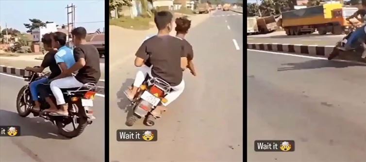 ఇప్పటికే ఒకవైపు రోడ్డు ప్రమాదాల సంఖ్య పెరిగిపోతుంటే కొంతమంది యువకులు మాత్రం ఇక బైక్ నడపడంలో తాము తోపు అని అందరికీ నిరూపించుకోవాలని తెగ ఆశపడుతున్నారు. దీంతో ఏకంగా నిర్లక్ష్యంగా డ్రైవింగ్ చేస్తూ బైక్ పైనే విన్యాసాలు చేయడానికి ప్రయత్నాలు చేస్తూ ఉన్నారూ అని చెప్పాలి. వెరసి కొన్ని కొన్ని సార్లు అంత బెడిసి కొట్టి ఇక చివరికి బైక్ అదుపు తప్పి కింద పడిపోయి గాయాల పాలవుతున్నారు. ఇక్కడ ముగ్గురు యువకులు కూడా ఇలాగే చేయాలని ప్రయత్నించి.. చివరికి కర్మ ఫలితాన్ని అనుభవించారు అని చెప్పాలి. ఇందుకు సంబంధించిన వీడియో ట్విట్టర్ వేదికగా వైరల్ గా మారిపోయింది.