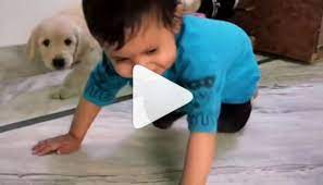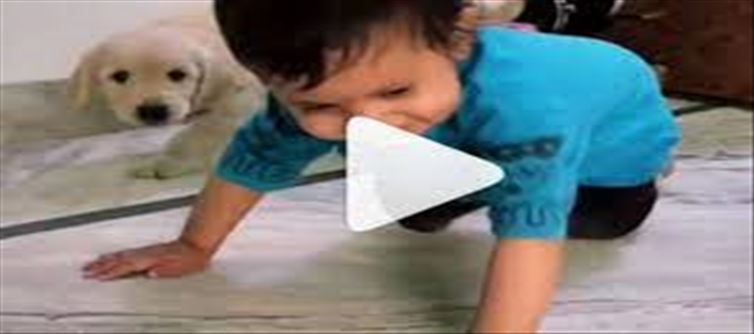 The infant in the video played with his pet dog while crawling on the floor. The young boy was beaming as his pet dog kissed him on the cheeks. The child laughed the entire time and so did his canine buddy who loved every second. You'll probably wind yourself up viewing this video repeatedly.