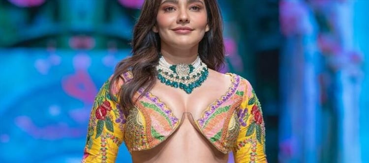 At a fashion event in Mumbai, the B-town actress neha sharma was spotted in a daring outfit. Anisha Shetty, a well-known and talented designer, created the actress's yellow lehenga. Neha's breathtaking runway walk caught everyone's attention, but shortly afterward, photos of her wearing a plunging cleavage-baring shirt went viral.