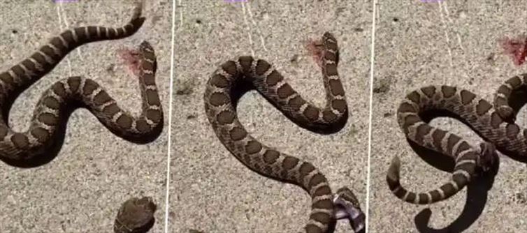 ఇలా వైరల్ గా మారిపోయిన వీడియోలో తల తెగిపడిన పాము తనను తాను కాటు వేసుకోవడం చూడవచ్చు. సాధారణంగా పాము చనిపోయిన తర్వాత కూడా దాని శరీరం కదులుతూనే ఉంటుంది. ఇక్కడ ఎంతో విషపూరితమైన రక్తపింజర పాము తల తెగిపడి పక్కనే పడింది. అయితే దాని శరీరం మాత్రం కదులుతూ ఉంది. ఒకసారిగా ఇక పాము శరీరం ఇక తెగిపడిన తలకు తగలడంతో ఇక పాము పౌరుషంతో ఏకంగా కాటు వేసేందుకు ప్రయత్నించింది. కానీ అలా తగిలింది తన శరీరమే అని మాత్రం గ్రహించలేకపోయింది. ఇక ఈ వీడియో చూసి నేటిజన్స్ అందరు కూడా షాక్ అవుతున్నారు. తల తెగిపడిన ఆ పాము పౌరుషం మాత్రం తగ్గలేదు అంటూ కామెంట్లు చేస్తున్నారు.