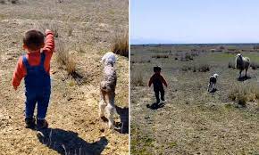 The video, which was posted on twitter, shows a young child leading a lost lamb to its mother. As the video continues, the young kid shows the lamb to its mother, who can be seen running in their direction.