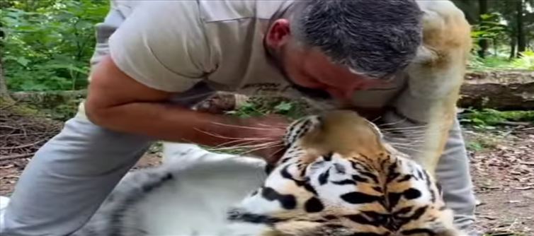 ఎంతోమంది వైల్డ్ లైఫ్ ఫోటోగ్రాఫర్లు ఇక ఇలాంటి ప్రమాదకరమైన జంతువులకు దగ్గరగా వెళ్లి ఫోటోలు వీడియోలు తీసి సోషల్ మీడియాలో పెట్టడం ఇక ఇంటర్నెట్ జనాలు వాటిని ఎంతో ఇంట్రెస్ట్ గా వీక్షించడం చేస్తూ ఉంటారు. అయితే ఇక దగ్గరగా వెళ్లి ఫోటోలు వీడియోలు అయితే తీస్తారు. కానీ వాటితో ఆటలు ఆడటానికి ధైర్యం మాత్రం చేయరు. కానీ ఇక్కడ ఒక వ్యక్తి మాత్రం ఏకంగా అత్యంత ప్రమాదకరమైన పులితోనే ఆటలు ఆడటం మొదలుపెట్టాడు. ఏకంగా పులికి లిప్ కిస్ ఇచ్చాడు ఇక్కడ ఒక వ్యక్తి.
