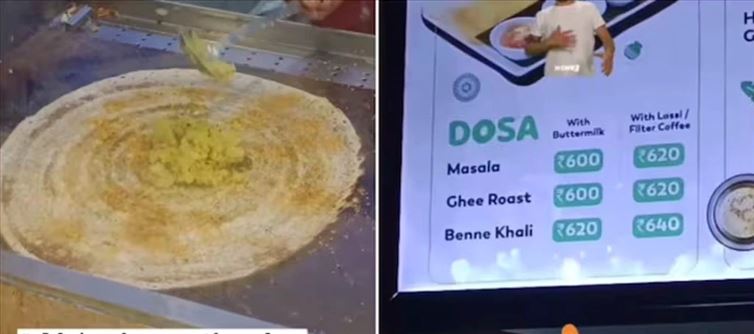 అంత కాస్ట్లి దోశ తినాలంటే ముంబై విమానాశ్రయానికి వెళ్లాల్సిందే.. అక్కడే ఇంత ఖరీదైన దోస దొరుకుతుందట. ఈ దోశ ఇంత కాస్ట్లీ కదా ఇందులో ఏమైనా స్పెషల్ ఉంటుందని చాలామంది అనుకుంటూ ఉంటారు. కానీ అలాంటిది ఏమీ లేదు.. అయినప్పటికీ సాధారణ మసాలా దోశ ఇంత రేటా అని జనం నోరెళ్ళ పెడుతున్నారు. షెఫ్ డాన్ ఇండియా అనే ఐడి తో ఇంస్టాగ్రామ్ లో ఈ దోసకి సంబంధించిన ఒక వీడియో షేర్ చేశారు.. ఈ వీడియో ముంబై ఎయిర్ పోర్ట్ లో దోశ కంటే బంగారమే చాలా చౌకగా దొరుకుతుందంటూ క్యాప్షన్ ని జత చేయడం జరిగింది. వీటిని చూసి పలువురు నేటిజెన్లు పలు రకాలుగా సెటైర్లు వేస్తున్నారు.