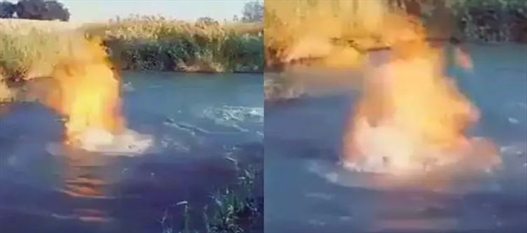 అయితే వైరల్ గా మారిపోయిన వీడియోలో చూసుకుంటే అది ఒక పెద్ద నది ప్రవాహం నుంచి వేరుపడిన కాలువల కనిపిస్తుంది. అయితే ఎవరో ఏకంగా నీటి కింద మంట పెట్టి మరిగిస్తున్నట్లుగానే నీరు ఉడుకుతూ కనిపిస్తుంది. అంతే కాదు ఒకచోట ఏకంగా గ్యాస్ సిలిండర్ పెడితే ఎలా అయితే మంటలు ఎగసిపడతాయో.. నీటిలోంచి అదే రేంజ్ లో మంటలు ఎగసిపడటం కూడా చూడవచ్చు. ప్రపంచంలోని మోస్ట్ డేంజరస్ నదులలో ఒకటైన దక్షిణాఫ్రికాలోని వాల్ నదిలో ఈ షాకింగ్ దృశ్యం కనిపించింది. నీటిలో ఉన్న మిథైన్ వాయువుకు ఎవరో నిప్పు అంటించారని..అదే ఇలా నదిలో మంటలు రావడానికి కారణమని ఎంతోమంది నెటిజన్స్ కామెంట్లు చేస్తున్నారు. ఏది ఏమైనా ఇలా నీటిపై మంటలు రావడం మాత్రం అందరిని ఆశ్చర్యానికి గురిచేస్తుంది.