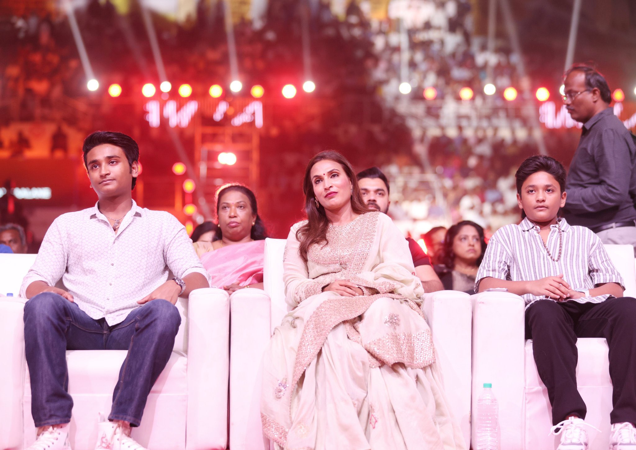 The event captured the affectionate bond between dhanush and his sons, with a heartwarming display of familial love. The trio sat together, creating a beautiful and memorable sight. Similarly, during the audio ceremony of 'Lal Salaam,' directed by aishwarya Rajinikanth, yatra and Linga joined their mother. The photos from these events portray a united family front despite any reported differences.
