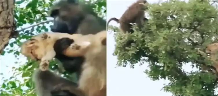 అయితే భారీ ఆకారం ఉన్న సింహాలపై రివేంజ్ తీర్చుకోవడంలో భయపడిపోయే బాబున్ కోతులు ఇక సింహం పిల్లలు ఎక్కడైనా కనిపించాయి అంటే చాలు రెచ్చిపోతూ ఉంటాయి. ఇక్కడ ఇలాంటిదే జరిగింది. ఏకంగా సింహం పిల్ల ఒంటరిగా ఉండడం గమనించిన ఒక బబున్ కోతి ఏకంగా దానిని ఎత్తుకెళ్లి సాహసం చేసింది. ఇది సింహం గమనించింది. ఆ బబున్ కోతిని భయపెట్టేందుకు ప్రయత్నించిన ఆ కోతి మాత్రం ఏకంగా సింహం పిల్లను చేతిలో పట్టుకుని చెట్టుపై అటు ఇటు తిరగడం మొదలు పెట్టింది. ఈ క్రమంలోనే ఏకంగా తన పిల్లల విషయంలో బబూన్ కోతి వ్యవహరించిన తీరుతో సింహానికి చిరురెత్తుకొచ్చింది. దీంతో ఊహించని రీతిలో రివేంజ్ తీర్చుకుంది. ఏకంగా బబున్ కోతికి నరకం చూపించింది.