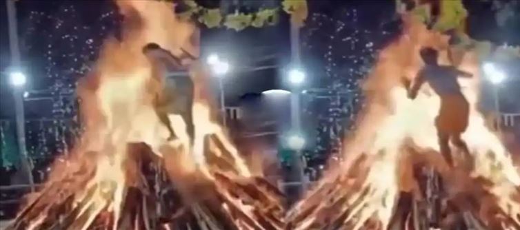 సాధారణంగా భారతదేశంలో దేవుళ్లను కొలిచే విధానంలో తరచూ కనిపించేది నిప్పుల గుండాలలో నడవడం. ఇలా నిప్పుల గుండాలలో నడవడం వల్ల పాపాలు తొలగిపోతాయని అదృష్టం వరిస్తుంది అని అందరూ అనుకుంటూ ఉంటారు. అంతేకాకుండా దేవుడు కోరిన కోరికలు తీర్చుతాడు అని ప్రగాఢంగా విశ్వసిస్తూ ఉంటారు అని చెప్పాలి. అయితే కొన్ని కొన్ని సార్లు ఇలా నిప్పుల గుండంలో నడవడం లేదంటే మండే కర్పూరాన్ని మింగేయడం ఇలాంటివి చూస్తూ ఉంటే భయం వేస్తూ ఉంటుంది. కానీ ఇక్కడ మాత్రం అంతకుమించి అనే రేంజ్ లోనే ఒక భయానక ఘటన జరిగింది. ఇందుకు సంబంధించిన వీడియోలు ప్రస్తుతం సోషల్ మీడియాలో వైరల్ గా మారిపోయింది. ఈ వీడియో చూస్తేనే ప్రతి ఒక్కరి వెన్నులో వణుకు పుడుతుంది.