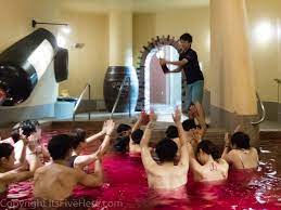 Various theme parks are functioning to attract the attention of people worldwide. But in reality, some theme parks are very different. We have heard a great deal about underground springs. Some even bathed in it. At a theme park in japan, there is a naturally occurring hot spring. But beyond just bathing, Hakone Kowakien Yunessun is a theme park where people mix their favorite drinks into it. This is the most important feature of this theme park. The highlight here is that you bathe in natural hot springs while mixing your favorite drinks. It is also said that many people who come here are very interested in bathing in the "red wine" spring.