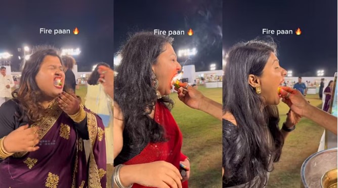 Fire Paan Viral Video: Many people are fond of eating paan, but it is very important to have a jigra to eat paan while burning in a fire. Recently, a video of people eating fire paan is going viral on social media, in which people's reactions are worth seeing. In fact, at a wedding, along with the food stall, a paan stall was also set up, where people were eating fire paan. Seeing the reaction of people while eating plan in this video, you too will laugh.