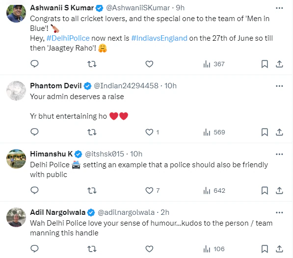 The delhi Police tweeted shortly after India's victory, stating, "This Just In: 11 indian men have'stolen' over a billion hearts in a 'hits-and-runs' incident in the Caribbean." An first investigation identifies the motivation as being 19/11 retaliation. The internet was captivated by the ingenious allusion to the match date and India's triumph. The post has garnered over 260k views and tons of reactions. people couldn’t stop lauding delhi Police’s subtle sense of humour.
