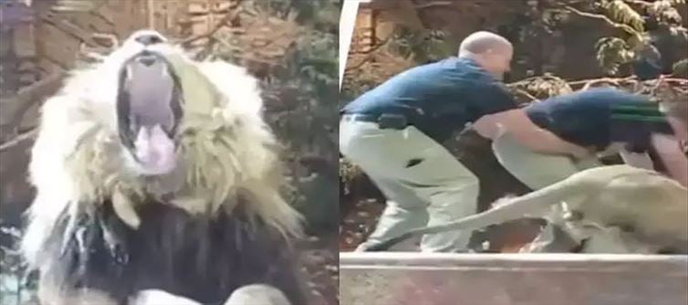 ఇలా వైరల్ గా మారిపోయిన వీడియోలో ఒక అనుభవం లేని జూ కీపర్ సింహాల మధ్యలోకి వెళ్లడం కనిపిస్తుంది. అయితే ఒక మగ సింహం అతనిపై ఏకంగా దారుణంగా దాడి చేసేందుకు సిద్ధమైతుంది. ఏకంగా అతన్ని నేలపై పడేసి లాగుతుంది ఆ సమయంలో అక్కడే ఉన్న ఆడ సింహం జోక్యం చేసుకుంటుంది. మగ సింహాన్ని వెనక్కి నేట్టేస్తుంది. అయితే ఇక మగసింహం మళ్లీ దాడి చేసేందుకు వెళ్లగా ఆడ సింహం ఆ మగ సింహాన్ని బెదరగొట్టేస్తుంది అని చెప్పాలి. ఇక ఇందుకు సంబంధించిన వీడియో సీసీ కెమెరాలో రికార్డు కావడంతో వైరల్ గా మారిపోయింది. అయితే ఇక ఆ జంతు సంరక్షుడు మాత్రం ప్రమాదకరమైన పరిస్థితిని ఎదుర్కొన్నాడు అని చెప్పాలి. ఇక ఇందుకు సంబంధించిన వీడియో కాస్త పరిస్థితి సోషల్ మీడియాలో వైరల్ గా మారిపోయింది.