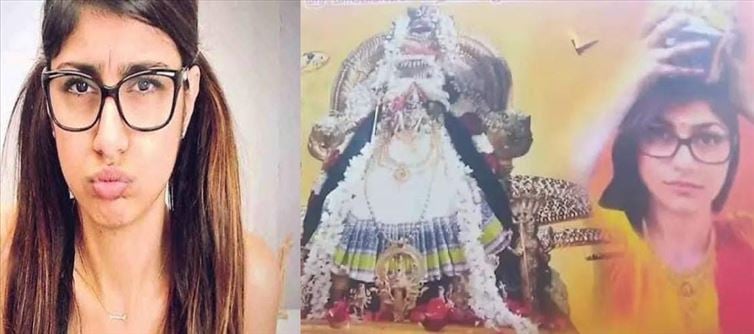 తమిళనాడులోని కాంచీపురం జిల్లాలో మతపరమైన పండుగ కోసం ఏర్పాటు చేసిన హోర్డింగ్‌లో మాజీ అడల్ట్ ఫిల్మ్ స్టార్ మియా ఖలీఫా చిత్రం కనిపించింది. ప్రస్తుతం అక్కడ రాష్ట్ర వ్యాప్తంగా హిందూ ఆలయాల్లో పార్వతి దేవతను పూజించే 'ఆడి' పండుగ జరుగుతుంది. ఈ వేడుకను కొద్ది రోజుల పాటు ప్రతి గ్రామంలో చాలా ఘనంగా నిర్వహిస్తారు. ఈ క్రమంలో వేడుకల్లో హోర్డింగ్‌లను కూడా ఏర్పాటుచేశారు. అయితే కురువిమలైలోని నాగతమ్మన్, సెల్లియమ్మన్ ఆలయాల వద్ద పండుగ దీపాలతో పాటు హోర్డింగ్‌లను ఏర్పాటు చేయగా, వాటిలో దేవత ఫొటోలతో పాటు, మియా ఖలీఫా ఫొటో కూడా ఉంది.ఆమె, పండుగ సాంప్రదాయ నైవేద్యాలలో భాగమైన 'పాల్ కుడం' ని ఎత్తుకుని తీసుకెళ్తున్నట్లుగా ఉంది. అలాగే ఆ హోర్డింగ్‌లో దానిని ఏర్పాటు చేసిన వారి ఫొటోలను, వాటి క్రింద తమ పేర్లను కూడా ముద్రించుకున్నారు. దీనిని చూసిన పలువురు తీవ్ర ఆగ్రహం వ్యక్తం చేస్తున్నారు. హోర్డింగ్‌కు సంబంధించిన ఫొటో వైరల్ కావడంతో, పోలీసులు సంఘటనా స్థలానికి చేరుకుని దానిని తొలగించారు. అయితే అలా కావాలనే చేశారని పలువురు అంటుండగా మరికొందరు దానిని కాదని కొట్టిపడేస్తున్నారు.ఆది ఉత్సవ్ రోజున ప్రజలు నాడి కథవర్‌ను పూజించి వారి ఆనందం, శ్రేయస్సు కోసం ప్రార్థిస్తారు. కురువిమలైలోని నాగతమ్మన్, సెల్లి అమ్మన్ ఆలయాల్లో వివిధ ఉత్సవాలను ఘనంగా నిర్వహించేందుకు భారీ కార్యక్రమాలను ప్లాన్ చేస్తున్నారు. ఇందుకోసం ఎక్కడికక్కడ లైటింగ్, హోర్డింగ్‌లు ఏర్పాటు చేసి ప్రజలను ఆహ్వానించారు. ప్రోగ్రామ్‌కి, మియా ఖలీఫా ఫోటోకు మధ్య ఎటువంటి సంబంధం లేదు. అందుకే ఈ ఫోటో ప్రస్తుతం చర్చనీయాంశంగా మారింది. ఈ చిత్రానికి సంబంధించిన వీడియో ప్రస్తుతం సోషల్ మీడియాలో వైరల్ అవుతోంది.ఆది ఉత్సవ్ లేదా సనాచ్య రోజున వర్షం, నదిని కృతజ్ఞతగా పూజిస్తారు. తమిళనాడులో దీనిని చాలా వైభవంగా జరుపుకుంటారు. ముఖ్యంగా మా అమ్మన్ అంటే పార్వతి దేవి ఆలయాలలో ఈ పండుగ చాలా రోజుల పాటు కొనసాగుతుంది. ఇందులో దేవి మాతను పూజిస్తారు. భజనలు, కీర్తనలు పాడతారు. వివిధ సాంస్కృతిక కార్యక్రమాలలో పాల్గొంటారు. ఈ పండుగ తమిళనాడు సంస్కృతి, సంప్రదాయాలలో ముఖ్యమైన భాగంగా ఉంది.ఏదేమైనా ఒక పోర్న్ స్టార్ ఫోటోను దేవాలయ హోర్డింగ్ పై పెట్టడం అనేది క్షమించరాని తప్పని నేటిజన్లు ఆగ్రహం వ్యక్తం చేస్తున్నారు.