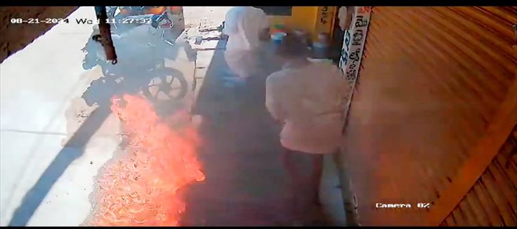 ఒక వ్యక్తి పెట్రోల్ బంక్ నుంచి ఐదు లీటర్ల పెట్రోల్ తీసుకుని వెళ్తుండగా, కంటైనర్ లీక్ అయింది. రోడ్డు మీద పెట్రోల్ స్పిల్ అయ్యింది. కొన్ని దుకాణాలు, వాహనాల దగ్గరే పెట్రోల్ మొత్తం పడిపోయింది. సీసీ కెమెరా ఫుటేజ్‌లో, ఇద్దరు మనుషులు అక్కడే మాట్లాడుకుంటుండగా, ఒకరు బీడి వెలిగించి, ఆ అగ్గిపుల్లను అజాగ్రత్తగా పెట్రోల్ పడిన చోట వేశారు. అంతే కొన్ని మిల్లిసెకన్లలోనే పెట్రోల్‌కు మంటలు అంటుకున్నాయి. ఒకసారిగా మంట చాలా ఎత్తుకు ఉవ్వెత్తున ఎగిసింది. దీంతో చుట్టుపక్కల ఉన్న వారు ప్రాణాలను కాపాడుకోవడానికి పరుగులు తీశారు.