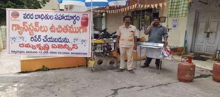 ఇందులో భాగంగా కొందరు మెకానికులు విజయవాడ వరద బాధితులకు తమ వంతు సహాయం చేయాలన్న సదుద్దేశంతో విజయవాడ విద్యాధరపురంలో ఉచితంగా గ్యాస్ స్టవ్స్ రిపేర్ చేస్తున్నామని ఓ పోస్టర్ లో తెలియజేశారు. అకస్మాత్తుగా వచ్చిన వరద ముప్పు వల్ల వరద బాధితుల సహాయార్థం ఈ నిర్ణయం తీసుకుంటున్నట్లు.. ఓ ఫ్లెక్సీ కూడా ఏర్పాటు చేసి సేవలందిస్తున్నారు. వర్షాల కారణంగా ఎవరివైనా గ్యాస్ స్టవ్ రిపేర్ కి వస్తే ఇక్కడికి వచ్చి ఉచితంగా రిపేర్ చేయించుకోవచ్చని అక్కడ వ్యక్తి తెలిపారు. ప్రస్తుతం ఆ ప్రాంతంలో వెలిసిన ఫ్లెక్సీ ఫోటో ప్రస్తుతం సోషల్ మీడియాలో వైరల్ అవుతుంది. ఈ ఫ్లెక్సీని చూసిన సోషల్ మీడియా వినియోగదారులు అతడిని ప్రశంసిస్తున్నారు. తన వృత్తి ద్వారా వరద బాధితులకు ఎలా సహాయం చేయాలన్న ఆలోచన రావడం నిజంగా గొప్ప విషయమని., అంతే కాకుండా అతడు సొసైటీకి ఎలా ఉపయోగపడుతున్నాడో అన్నదానిపై కూడా కొందరు నెటిజన్స్ కామెంట్ చేస్తున్నారు.