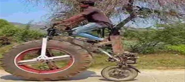 ఓ జంట తమ కారు క్యాబిన్ లోపల ఓ చిన్న బెడ్ రూమ్నే ఏర్పాటు చేసి ఔరా అనిపించారు. ఇంకొకరు ట్రయాంగిల్ షేప్లో వీల్స్ను తయారు చేసి వాటిని సైకిల్కు రూపొందించారు. టైర్లు ఎప్పుడూ వృత్తాకారంలోనే ఉండాలని ఎందుకు భావించాడో ఏమో ఇలాంటి పనికి పూనుకుని విజయం సాధించాడు. ఇలా చెప్పుకుంటూ పోతే ఇలాంటివి ఎన్నో కనిపిస్తుంటాయి.సాధారణంగా వాహనం సైజ్, బరువును బట్టి తయారీదారులు వాహనాలను టైర్ల సైజు, షేప్ను నిర్ణయించి వాటికి అమరుస్తారు. వాహనం రోడ్డుపై రయ్ మంటూ దూసుకెళ్లడంలో టైర్లదే ప్రధాన పాత్ర. కానీ ఇక్కడ ఓ యువకుడు అలా కాదు.. తన బైక్ కంటే ఎక్కువ ఎత్తులో ఉండే టైర్ను బైక్కి అమర్చి నెటిజన్ల దృష్టిని ఆకర్షించాడు. ఈ వీడియో ఇప్పుడు తెగ వైరల్ అవుతోంది.వీడియో చూసిన కొందరు నెటిజన్లు అభినందిస్తుంటే, మరికొందరు మాత్రం నెగిటివ్గా రియాక్ట్ అవుతున్నారు. ఆ వీడియో ప్రస్తుతం సోషల్ మీడియాలో వైరల్ అవుతోంది.