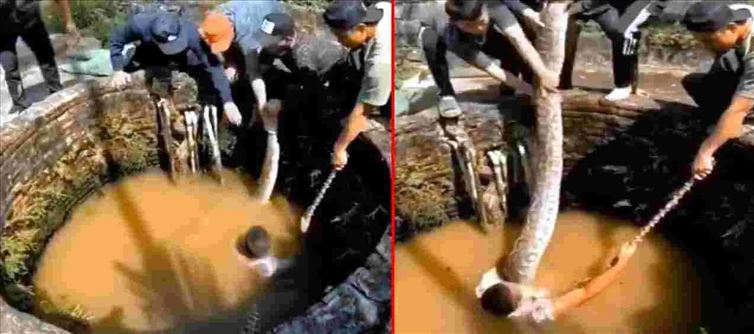 విషయం ఏమిటంటే, ఓ వ్యక్తి బావిలో నుంచి కొండచిలువలను బయటి తీయడం సర్వత్రా హాట్ టాపిక్ గా మారింది. ఏం జరిగిందో ఏమో తెలీదు గానీ... రెండు భారీ కొండచిలువలు ప్రమాదవశాత్తు ఓ బావిలో చిక్కుపోయి, బయటికి రాలేక నానాతంటాలు పడుతున్నాయి. కాగా బావిలో వింత శబ్ధాలను గమనించిన స్థానికులు అక్కడ గుమికూడారు. చివరకు అంతా కలిసి వాటిని రక్షించేందుకు సిద్ధమయ్యారు. ఈ క్రమంలోనే వారిలో ఓ వ్యక్తి బావిలోకి దిగి, నీటిలో మునిగిపోయిన కొండచిలువను వెతకడం స్టార్ట్ చేశాడు.