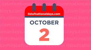 October 2 brings together a variety of commemorations, from honoring the life and philosophy of mahatma gandhi to observing global movements for peace and the environment. The day is a reminder of how one person’s influence can affect the world, and it calls for continued efforts toward non-violence, kindness, and global cooperation.
