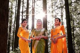 - Saree: women wear silk or cotton sarees, often in bright colors like red, yellow, green, or orange, symbolizing prosperity and happiness.