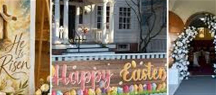 · Easter-themed banners and posters highlighting the season’s message.