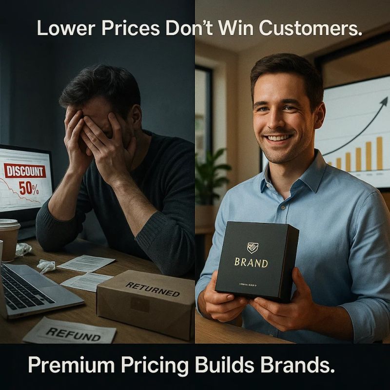 Why? Because people don’t actually buy “cheap.” They buy value. A higher price signals quality. It forces you to deliver a better product, a better experience, and a brand that stands apart. And with healthier margins, you now have the resources to reinvest into ads, talent, and customer experience—the very things that fuel long-term growth.