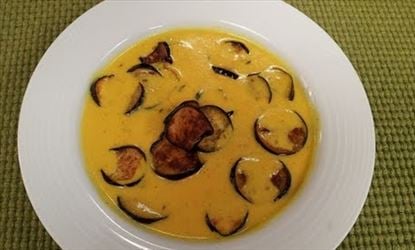 • Now add brinjals, sauté them for 2 to 3 minutes, add yogurt and beasn mixtureStir continues ally until kadhi starts boiling.