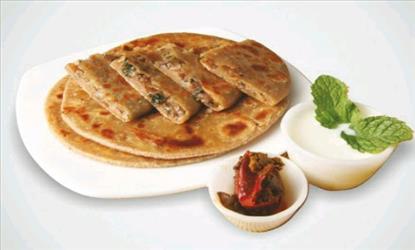 • Heat a tava/pan (griddle). When well heated, place a paratha on the tava.